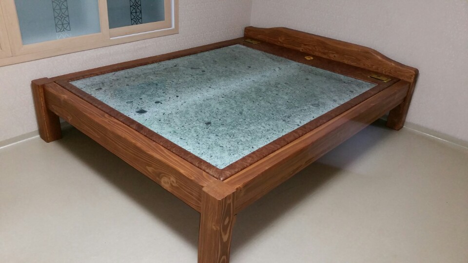 KHQ-고재평상(원목), KHTA(천연가죽)보료, 보성녹차석